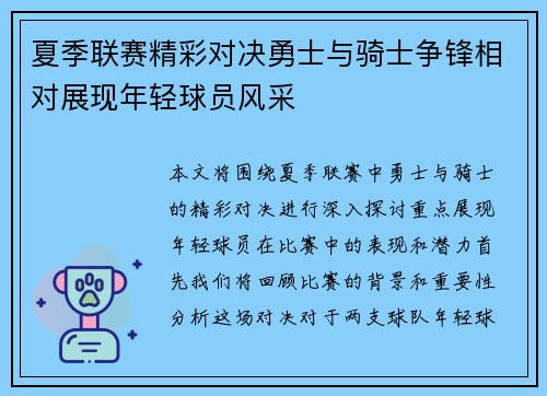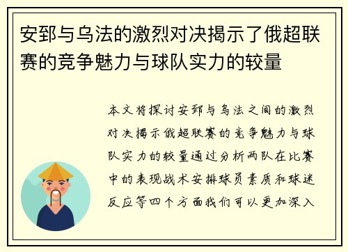 本文将深入探讨“大秦之水与杭州绿城的精彩对决”,通过比赛过程中的表现和细节,展现足球的魅力与团队精神。文章将从四个方面进行阐述:一是比赛前的准备与训练,二是比赛中的战术运用,三是球员之间的默契配合,以及四是赛后的总结与反思。每个方面都将详细描述在这场激烈对抗中如何体现出足球所承载的激情、团结和拼搏精神。最终,通过对整场赛事的回顾,我们将看到足球不仅仅是一项运动,更是一种文化,一种精神象征。 1、...