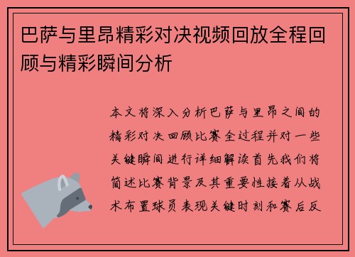在当今足球的舞台上,巴国际与巴拉竞之间的对决备受瞩目。两支球队不仅在技术和战术层面上相互较量,更是在球迷心中激起了巨大的热情和期待。这场比赛不仅关乎三分,更是代表了各自的荣誉与骄傲。在这篇文章中,我们将从四个方面详细分析这一精彩对决:球队历史背景、当前阵容分析、战术布置以及比赛前景预测。通过对这些方面的深入探讨,我们试图揭示出谁能在这场激烈竞争中笑到最后,成为最终的赢家。 1、球队历史背景 巴国...